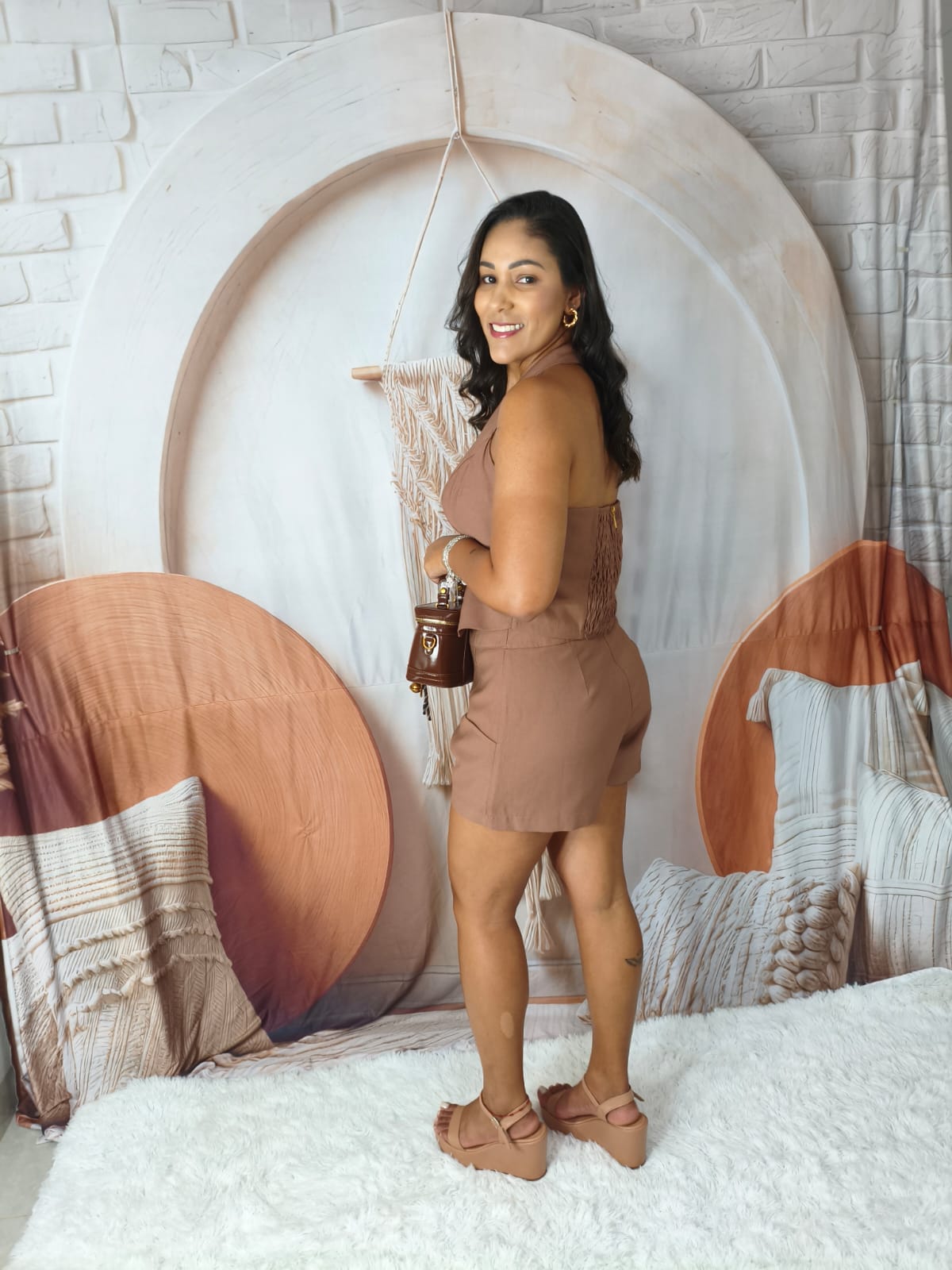 Conjunto Short com colete forrado Zíper e botões de metal sem bojo