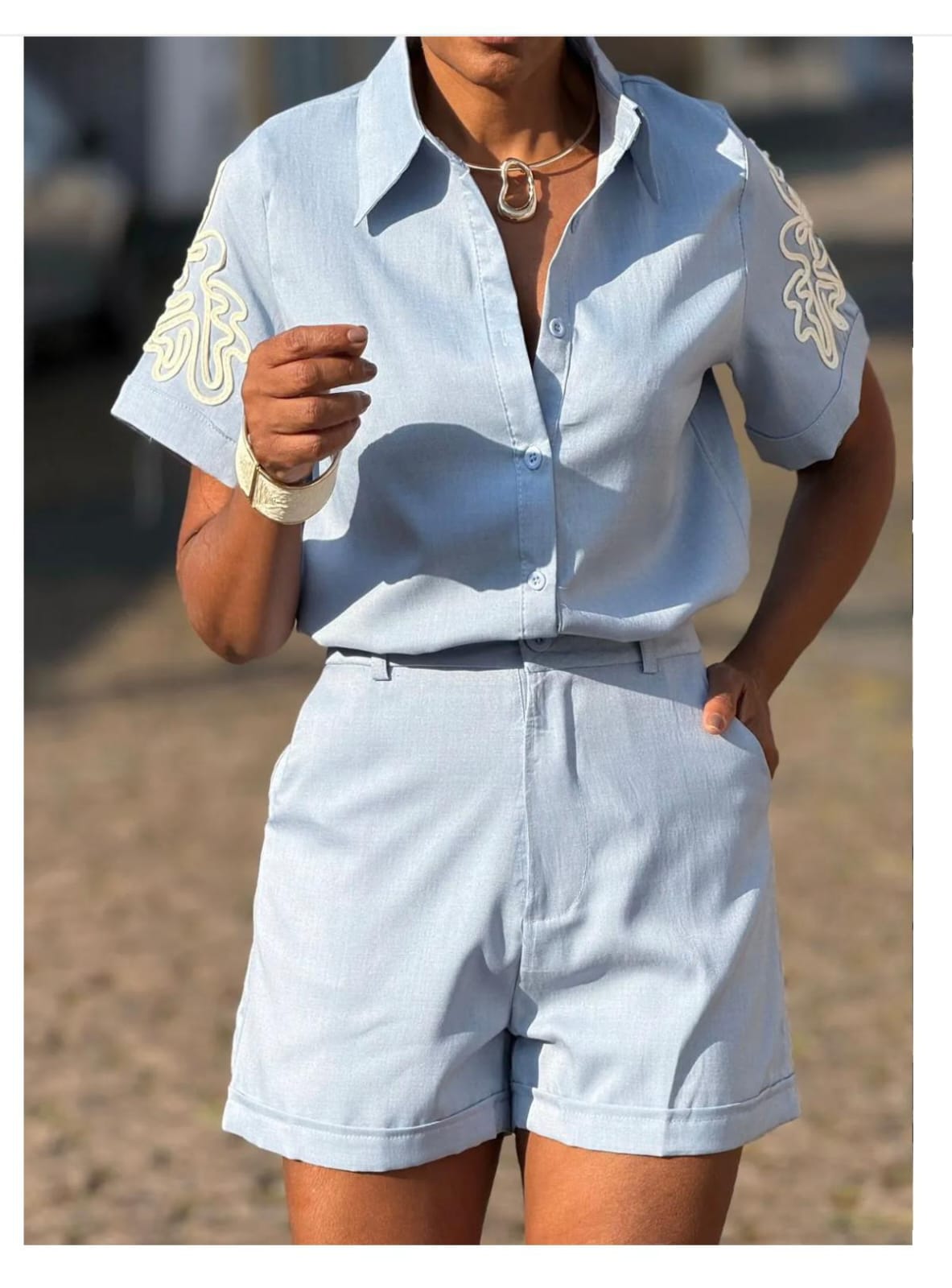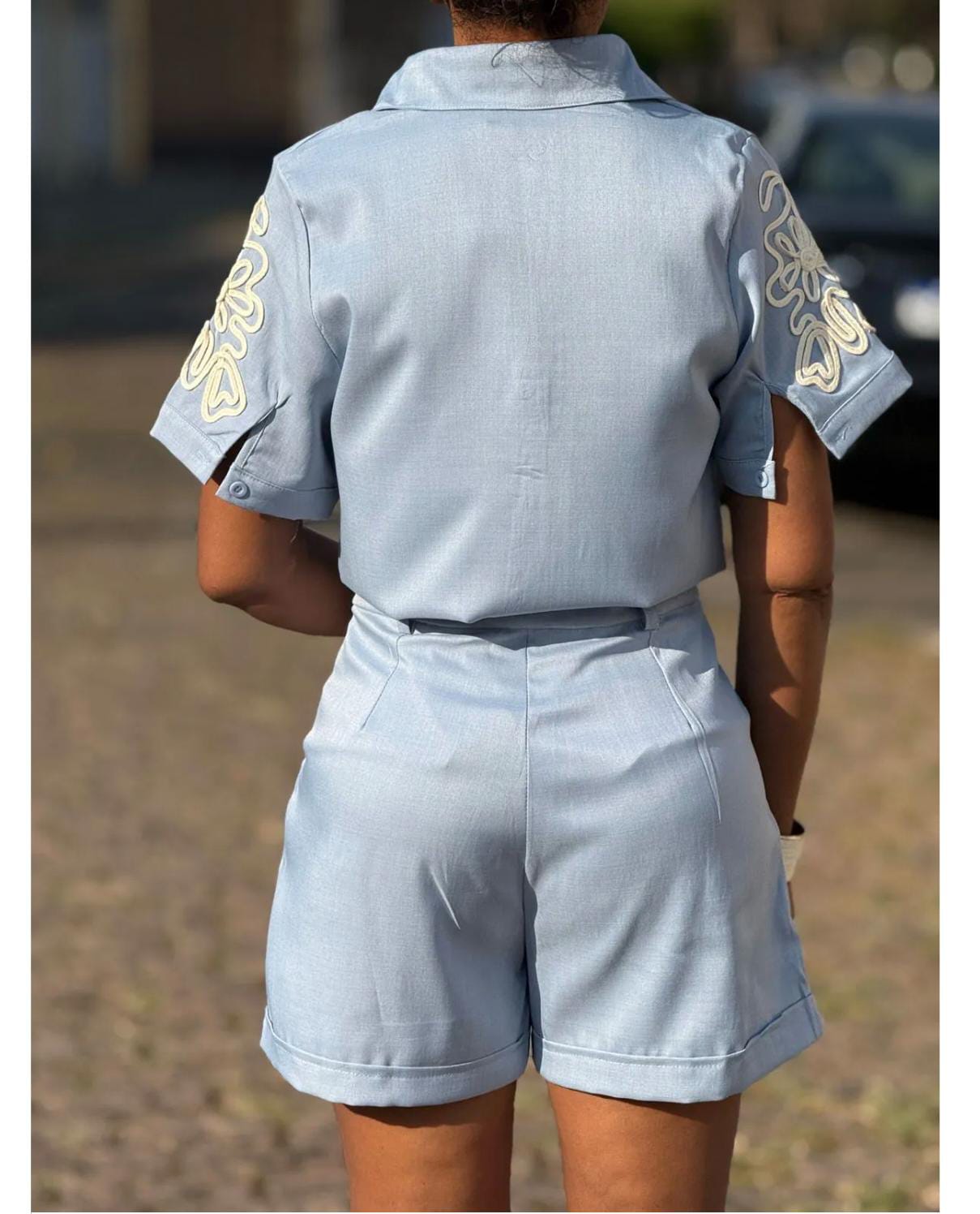 Conjunto short+ camisa manga curta bordada